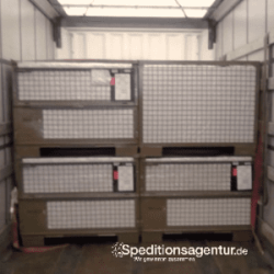 Eingesetzt haben wir einen offenen Plateau LKW. Die Verladung wurde von Absender und Empfänger per externem Krandienst organisiert. Daher haben wir mit dem Kunden einen fixen Durchführungstermin vereinbart. Das ist zwar teurer als eine flexible Terminvariante, aber bei Krandiensten entstehen schnell hohe Kosten im Falle von Wartezeit, weshalb es sich in jedem Fall lohnt, den Transport zugunsten der Terminverbindlichkeit zu verteuern.