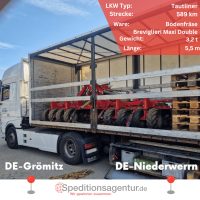 Hier duften wir, mit der Unterstützung unseres Transportpartners, der Spedition Friedlein, eine Bodenfräse Breviglieri Maxi Double per Tautliner transportieren. Das Frachtvolumen lag bei 5,5 Lademetern und 3,2 t Gesamtgewicht.