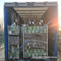 Transportiert wurden Bäumchen und Stämmchen auf CC-Containern in einem Sattelzug mit Planenaufbau. Da es sich um Prospektware handelt, wurde ein fixer Zustelltermin vereinbart. Insgesamt wurde der Sattelzug auf kompletter Ladefläche ausgelastet (13,6 Lademeter). Man spricht bei Vollauslastung auch von FTL (Full Truck Loaded). Die Verladung erfolgte von hinten über Rampe und an der Entladestelle seitlich per Stapler durch den Empfänger.
