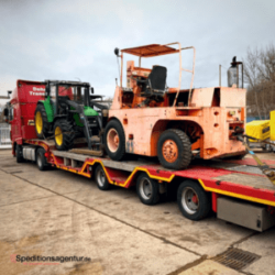 Hier haben wir den Transport einer Landmaschine organisiert. Es ging von Deutschland nach Frankreich. Zum Einsatz kam ein Sattelzug mit Planenaufbau.