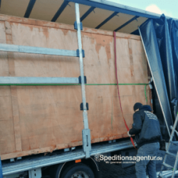 Hier haben wir den Transport einer Ladung Holzbretter von Dermbach in Thüringen nach Berlin organisiert. Verladen wurde seitlich per Stapler auf einen Sattelzug mit Planenaufbau.