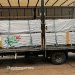 Hier haben wir den Transport einer Kleinwindanlage von Flörsheim in Hessen nach Frohndorf in Thüringen organisiert. Zum Einsatz kam ein Planen Sattelzug. Zusätzlich zur Ladungssicherung per Zurrgurt wurde die Anlage nach vorne mit einem Palettenstapel gegen verrutschen abgesichert.