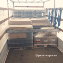 Hier haben wir den Transport einer Ladung Holzbretter von Dermbach in Thüringen nach Berlin organisiert. Verladen wurde seitlich per Stapler auf einen Sattelzug mit Planenaufbau.