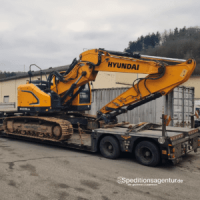 Hier haben den Transport eines Radladers (Link zur Themenseite Radlader-Transporte) von Hüffingen in NRW nach Triftern in Bayern organisiert. Zum Einsatz kam ein Tiefbett.