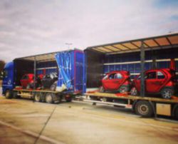 Hier haben wir rote Kabinenroller per Jumbo Hängerzug (Volumen-Transporte) von Lauffen am Neckar in Baden-Württemberg nach Soest in Nordrhein-Westfalen transportiert.