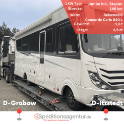 Bei diesem Wohnmobil Concorde Carlo 840L war die Kardanwelle ausgebaut. Somit durften wir, mit der Unterstützung von unserem Transportpartner Jan Schumacher Transporte, zu unserem Kunden transportieren.