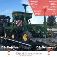 Hier haben wir mit unserem Transportpartner TTT- Service Roswitha Ferdinand einen Landwirt für die nächste Aussaat ausgerüstet. Transportiert wurde eine John Deere Sämaschine von Einöllen in Rheinland-Pfalz nach Ostbevern in NRW.