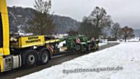 Transportiert wurde ein Kartoffelvollernter im Tiefbett LKW. Was bei Spezialtransporten zu beachten ist, erfahren Sie auf unserer Themenseite Spezialtransporte. Das Ladevolumen betrug 3,5 t auf 7,5 Lademetern mit 3,2 Metern Höhe. Somit handelt es sich um keinen GST (Großraumtransport oder Schwertransport). Die Verladung war durch Absender + Empfänger gewährleistet.