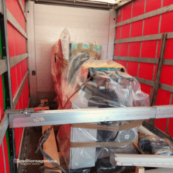 Zum Einsatz kam hier ein Tieflader mit Auffahrrampen. Verladen wurde durch Absender und Empfänger. Das Ladevolumen betrug 3 Lademeter bei 6,5 Tonnen.