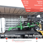 Dank unseres Transportpartners (Link zum Speditionenverzeichnis) konnten wir diesen Futtermischwagen per Tiefbett von Cham in Bayern nach Guxhagen in Hessen transportieren. Das Ladevolum belief sich auf knapp 7 Lademeter bei 6,6 t Gesamtgewicht.
